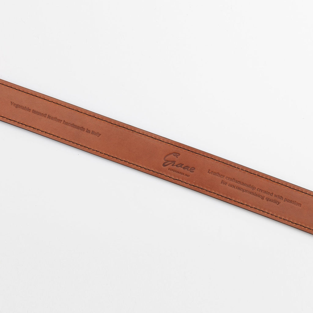 Belt made from 4 layers of Italian vegetable tanned leather with grainy structure. Casual buckle made from solid brass, plated with silver and palladium.