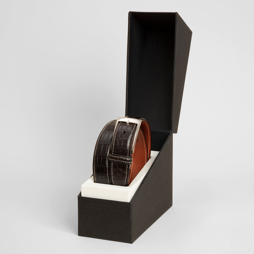 Solid Sterling Silver buckle made in Germany with genuine alligator skin from the US with small scales for the perfect look and feel. Each skin is closely numbered and follow CITES regulations, who adhere to the conditions of the Washington Convention on International Trade in Endangered Species of wild fauna and flora.