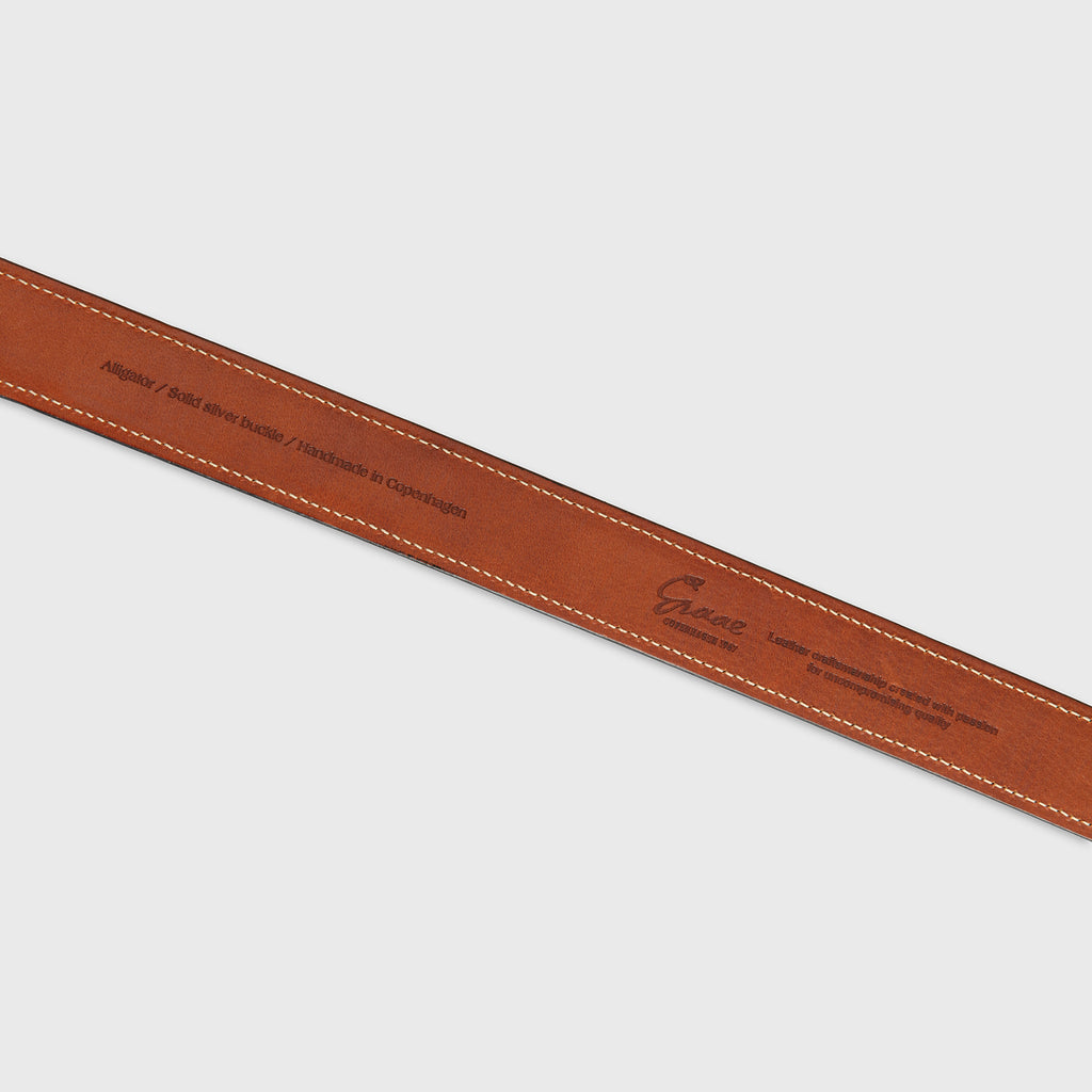 Solid Silver buckle, Handmade Alligator belt - 37 mm T. Moro