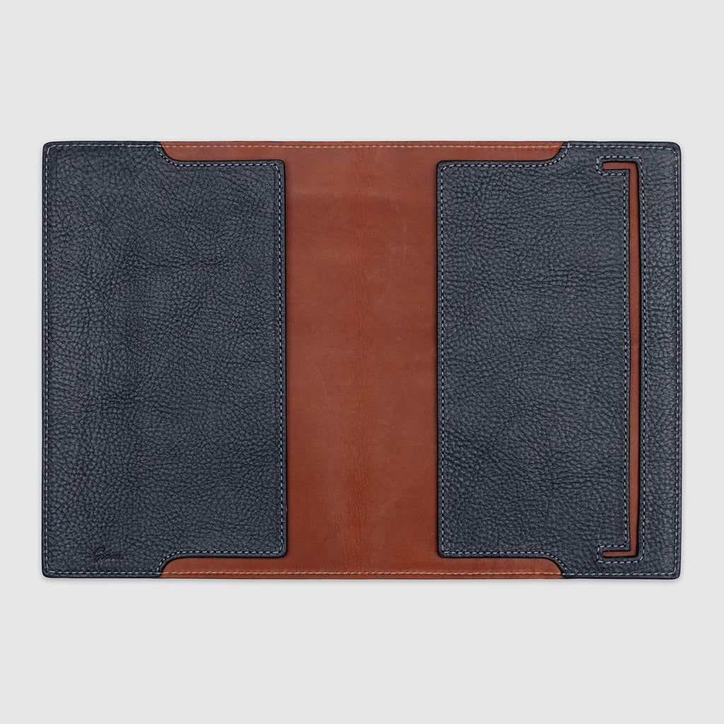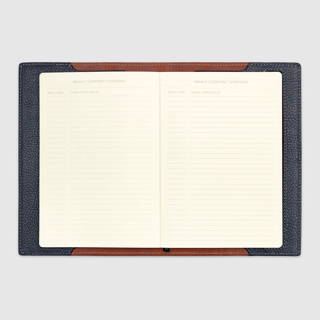 A5 Notebook Cover in Bull Calf, with grainy structure - Marine
