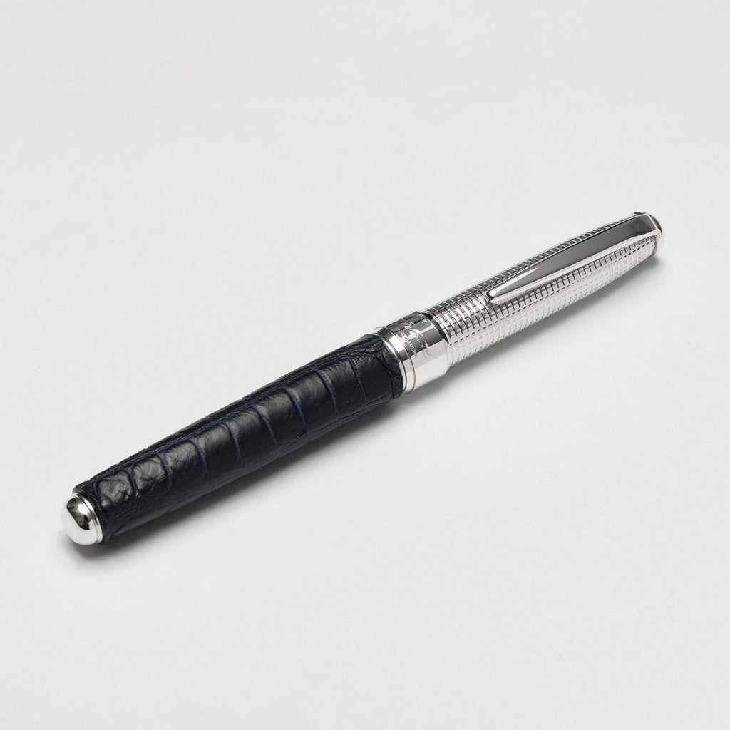 Fountain Pen, Silver and Alligator hide - Marine
