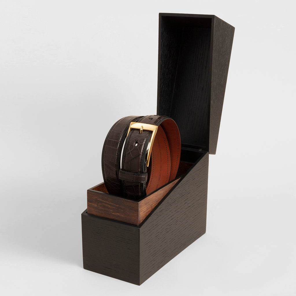 Solid Gold buckle, Handmade Alligator belt - 37 mm Dark Brown
