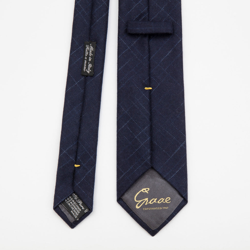 100% Cashmere tie in blue window check. Handmade in Italy from the world know fabric weaver Drapers Italy.