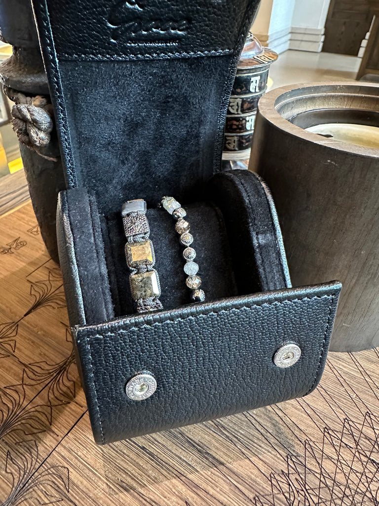 Single Watch and Jewelry Roll in Chérvo - Black lining